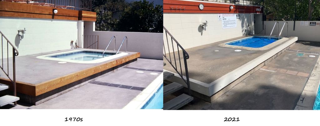 Here are a few more images I got off from my slides. The Jacuzzi was nice. My twin brother Patrick was at the front entrance of 2005 holding the door open. We were on our way to work at that moment and I wanted to get a snapshot of the Lobby. Speaking of my brother, we both initially lived at R1 unit 313 when we first moved to the apartment complex that was around 1974. Jim Casale was very nice in signing us up as renters. R! building was originally brown in color.