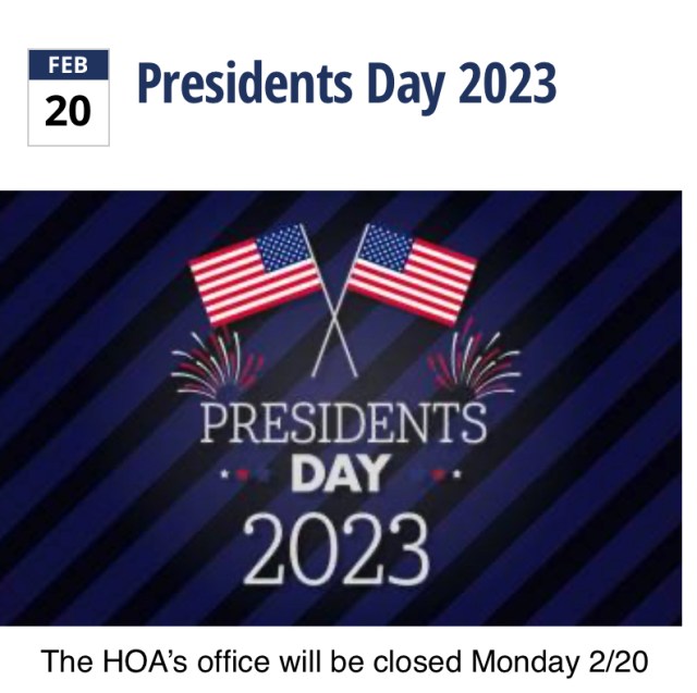 The HOA office will be closed on Monday February 20 On February 17, 2023February 18, 2023 By Rockridge Manor HOAIn Notices Share this: Click to share on X (Opens in new window) X Click to share on Facebook (Opens in new window) Facebook Like Loading...