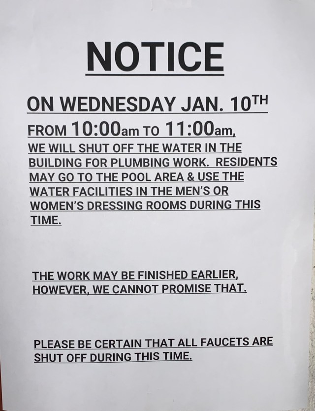 Water Shut Off in 288 Whitmore on Jan 10th from 10AM to 11AM On January 8, 2024 By Joe JohnstonIn 288 Whitmore St residents, Notices, Water Shut Offs Share this: Click to share on X (Opens in new window) X Click to share on Facebook (Opens in new window) Facebook Like Loading...