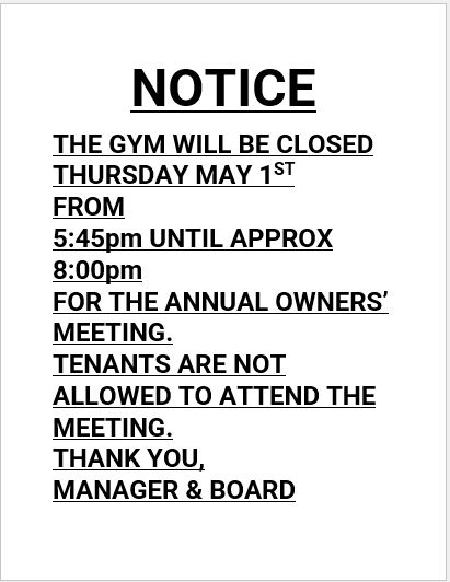 We will have our FIRE ALARM tested tomorrow, Friday March 7th. This test will include all 3 buildings and will take from 9:30am until approx. 3pm, possibly a little later. You will hear the fire alarm sound for about 1 second, about 1 time per minute, until the test is completed, perhaps 15-25 minutes. If this will cause difficulty for residents and/or pets, please take whatever precautions are best. We must have the alarm tested each year.