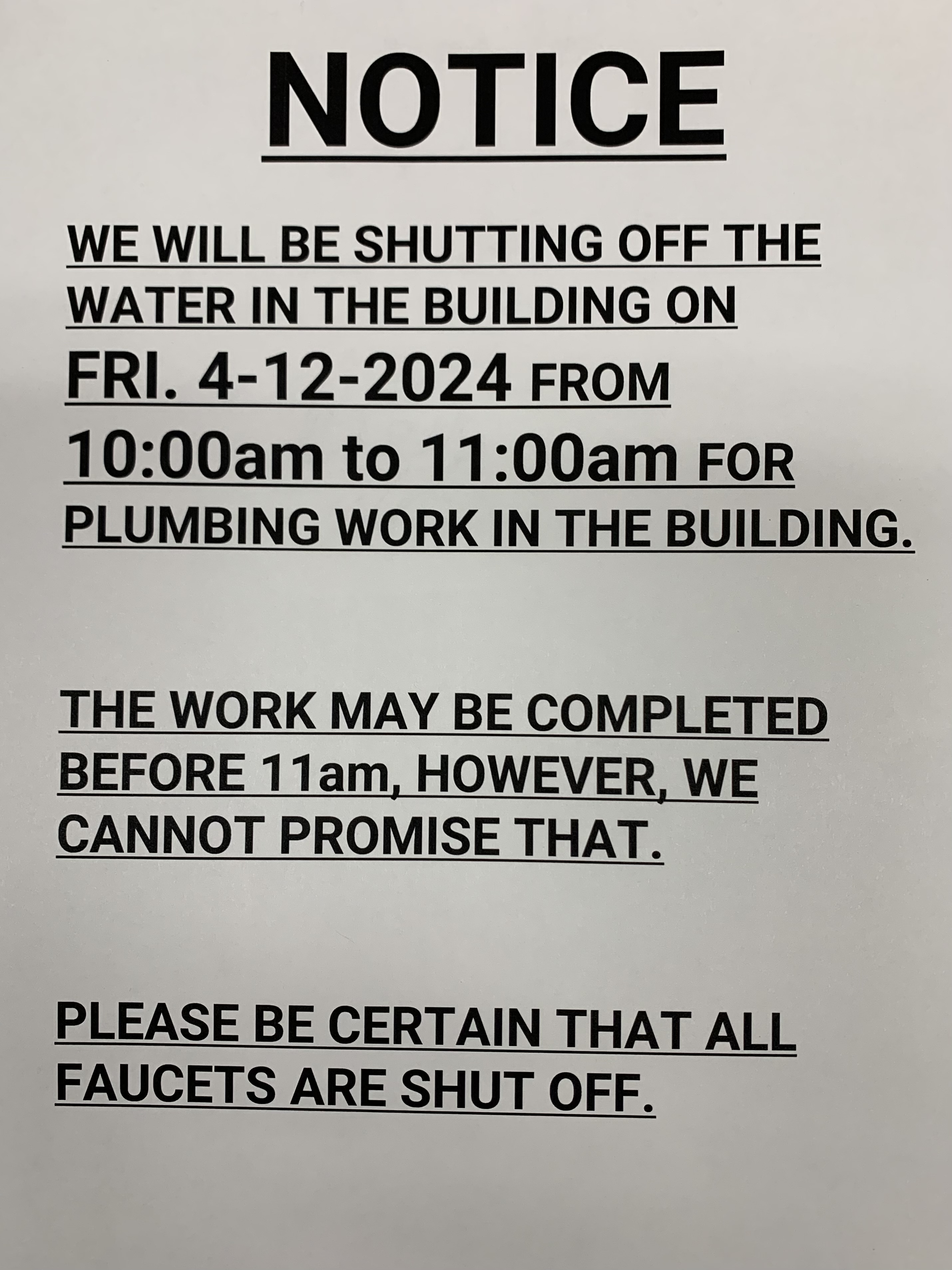 ON FRIDAY FEB. 9TH FROM 11:30am TO 1:00pm, WE WILL HAVE OUR ANNUAL FIRE ALARM TEST.