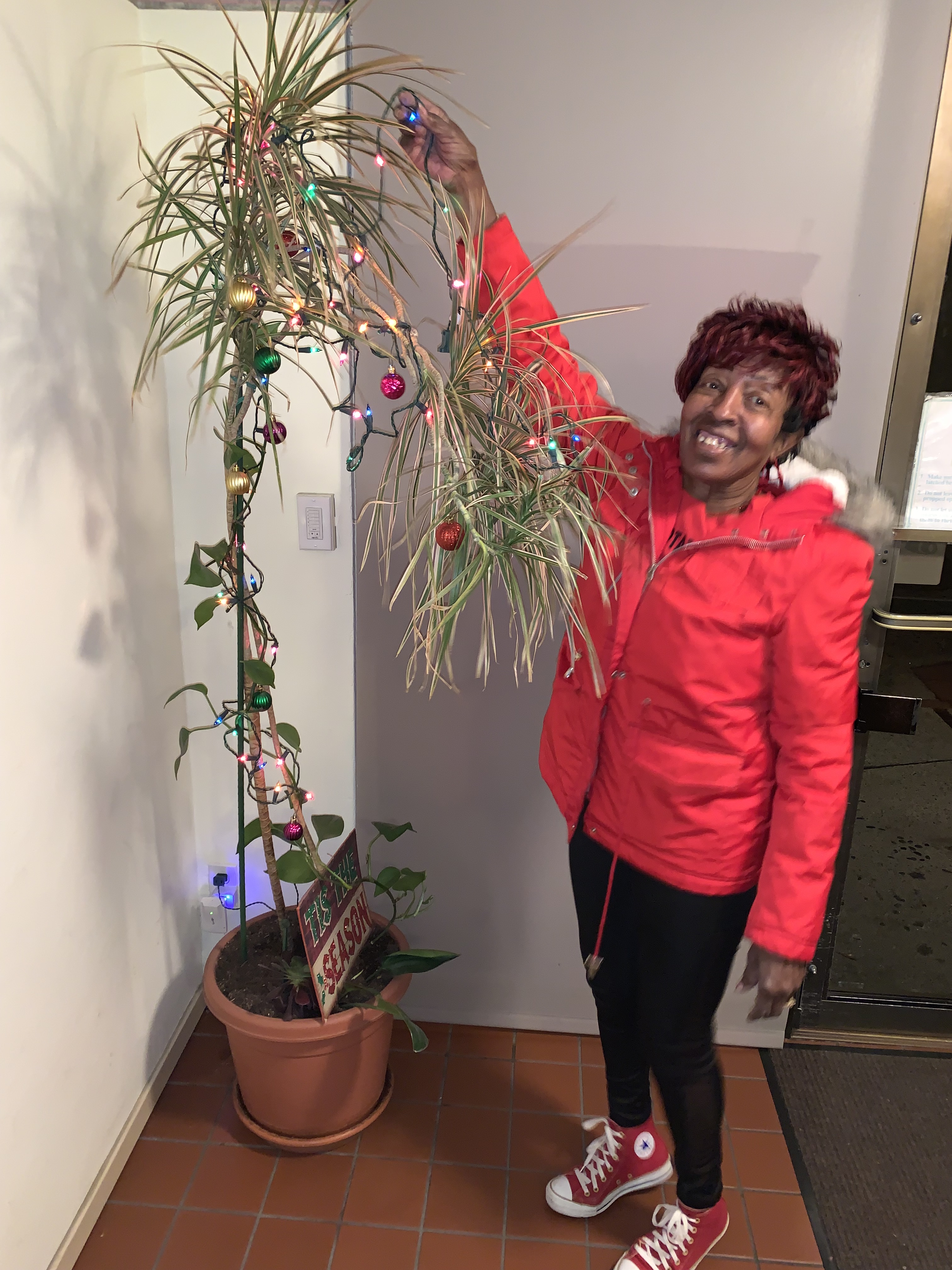 Betty Jo is leaving Rockridge Manor after 23 years to live with her family in Antioch, CA. For many years Betty Jo decorated the 250 Whitmore St lobby for the holidays.