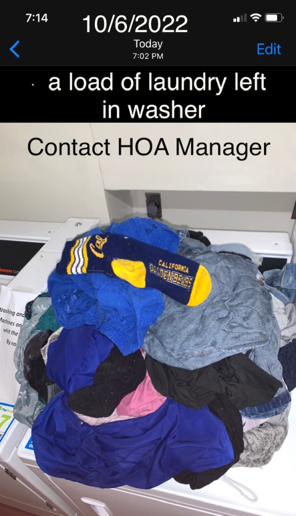 A load of laundry was left in a washer. An Emma & Michele clothing brand label was among the clothes. On October 6, 2022October 7, 2022 By Joe JohnstonIn Lost & FoundLeave a comment