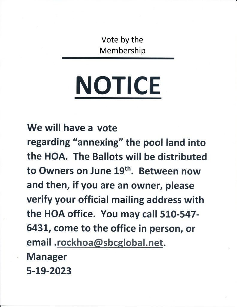 If you have any questions, please contact the HOA Office at 510-547-6431.