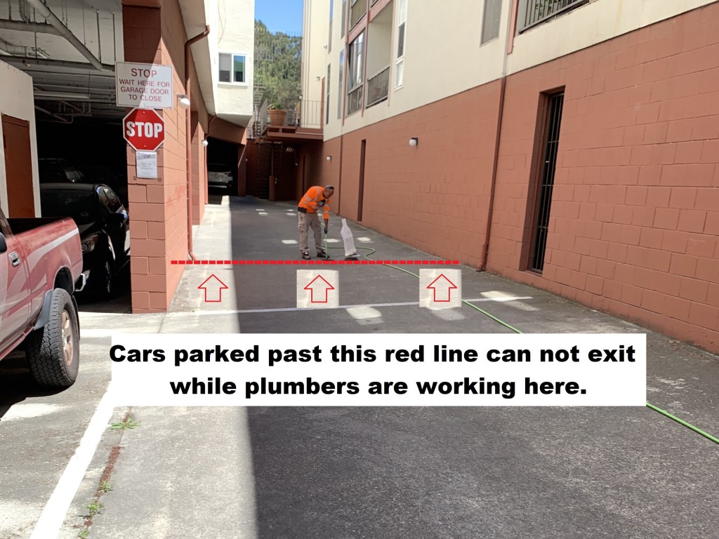 EBMUD requires apartment buildings to replace their sewer laterals to improve the quality of the water entering the San Francisco Bay. The HOA is having this work done starting Monday October 16th at 9am. The project will take about 1 week, HOPEFULLY being concluded Friday October 20th. Because this work will occupy approximately a 5 foot by 6 foot space in the R2 driveway area 75 feet from the garage gate, it will block the 2nd and 3rd parking inlets from 9:00am – 5:00pm only until the work is completed. No resident needs to move their car to allow this work to be done.